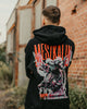 350 g/m² Fleece, Oversize geschnitten, keine Kordeln, pure Präsenz. Auf dem Rücken der Engel im roten Nebel, MESZKALINs Statement zwischen Aufstieg und Untergang. Ein Hoodie, der die Nacht übersteht und dich in den Tag trägt.